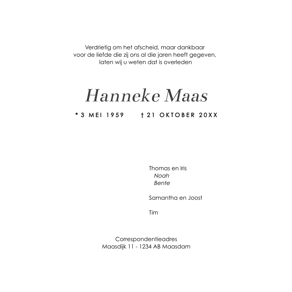 Rouwkaart maken online? Kies dit klassieke ontwerp met marmer en zwart kader. Ontwerp een stijlvolle, persoonlijke kaart in de editor van DAGLIEF.