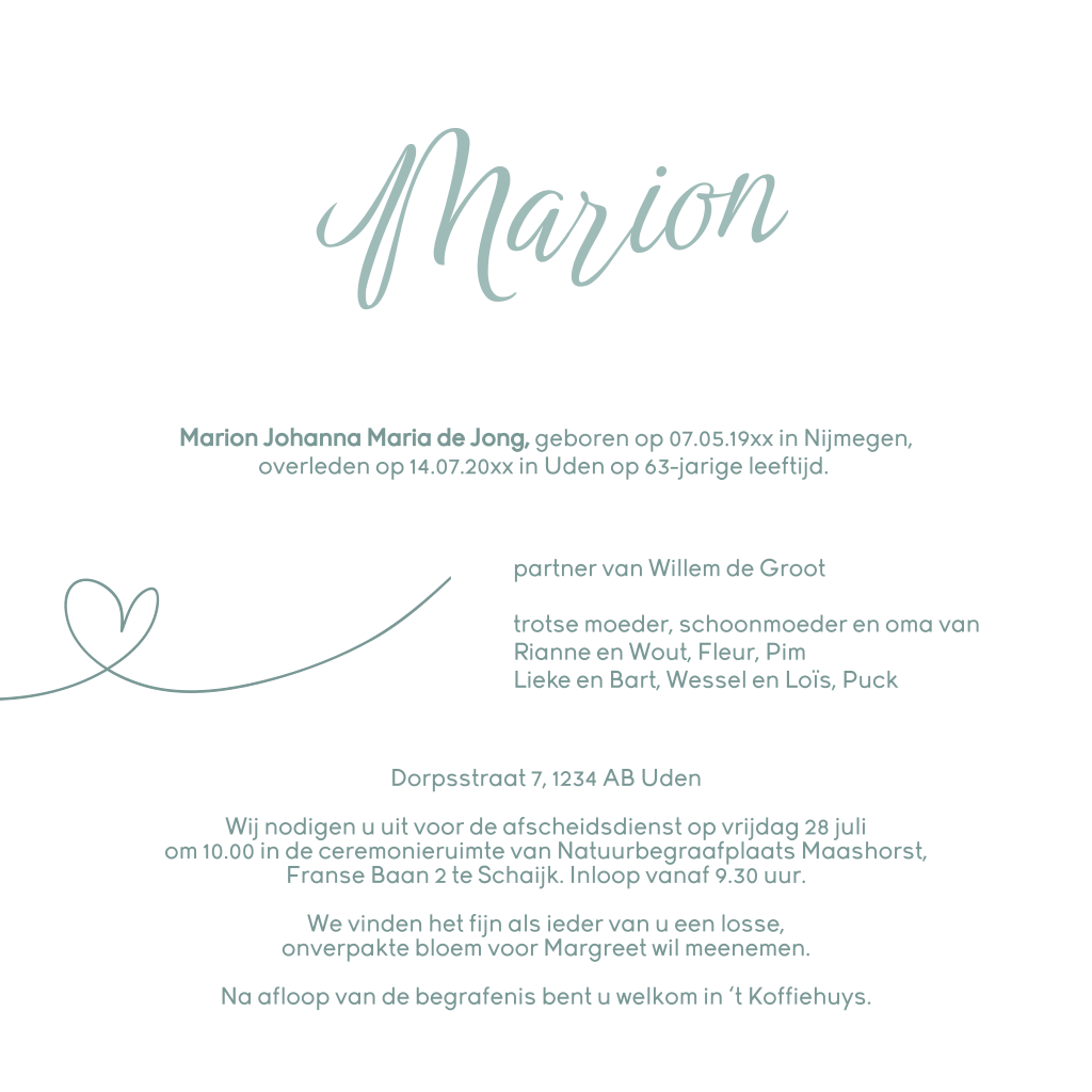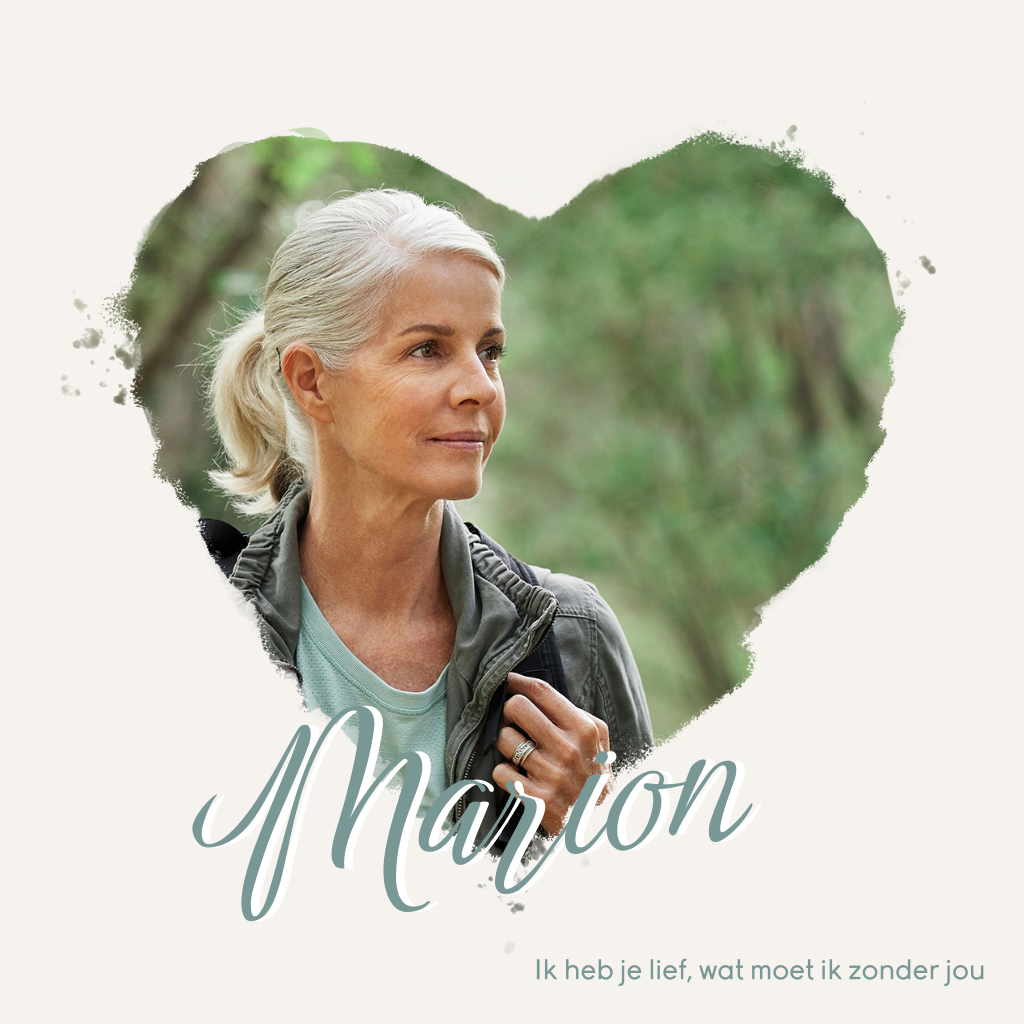 Kies voor deze moderne en lieve rouwkaart met foto. Het hart laat zien hoeveel liefde jullie voelen voor je dierbare.