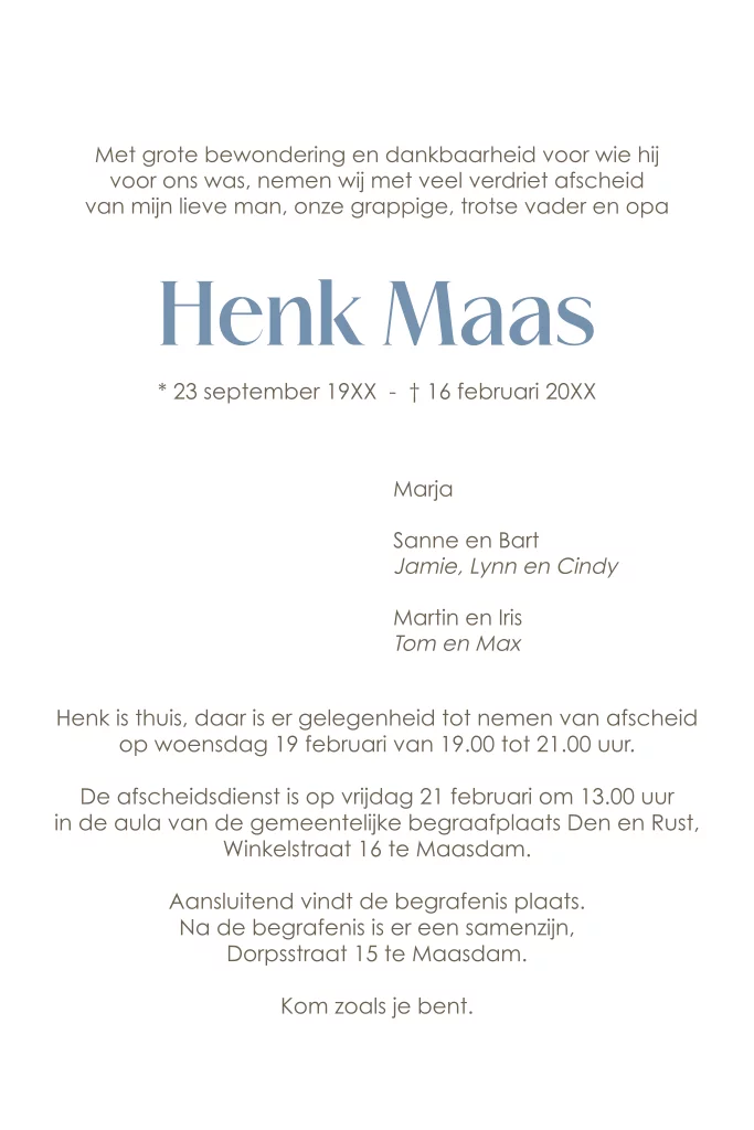 Luchtige rouwkaart met duif en zachtblauwe poëtische toon