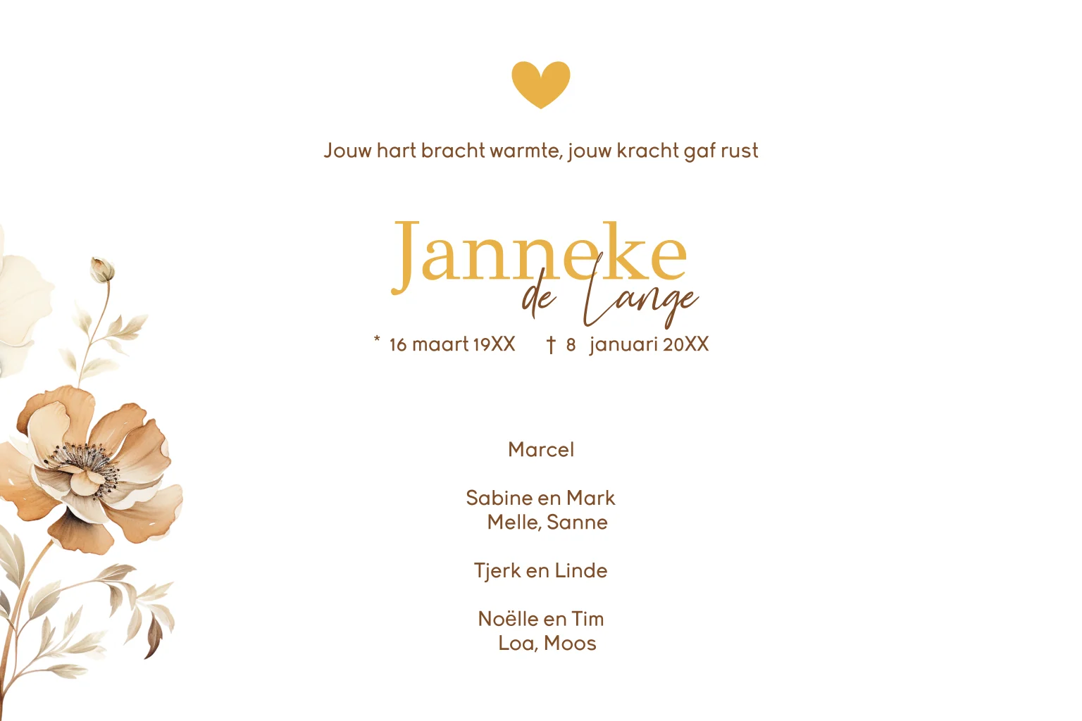 Moderne rouwkaart met foto en eigentijdse typografie - vrouw