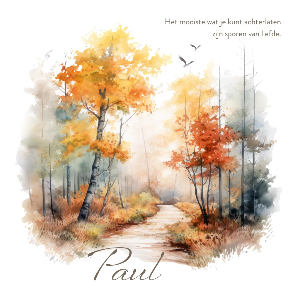 Kies voor deze mooie rouwkaart met geschilderd bos, voor iemand die de natuur lief had.