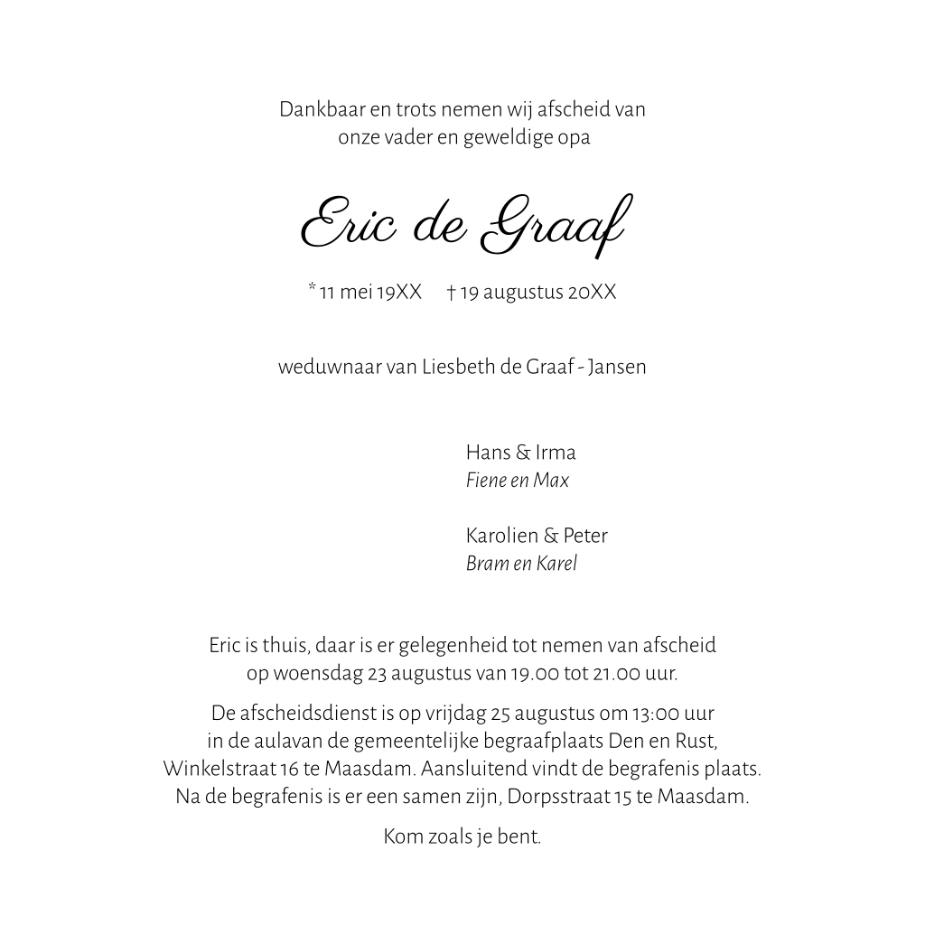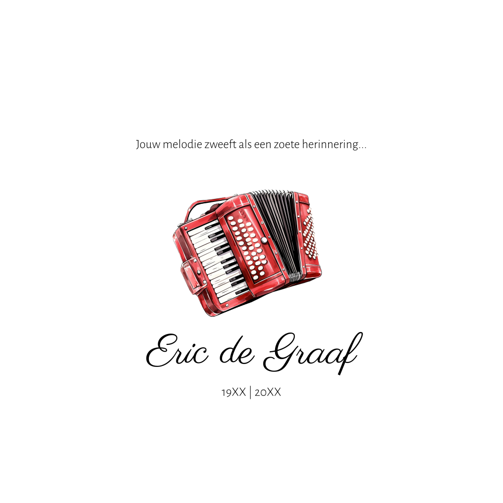 De rouwkaart mag persoonlijk zijn en passen bij het leven. Hield hij of zij van muziek en in het bijzonder de accordeon? Kies voor dit ontwerp.