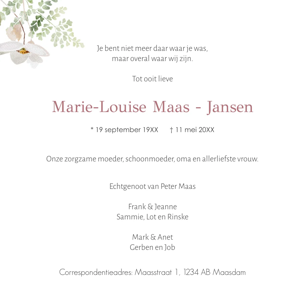 Pak de kaart op bewerk deze met een persoonlijk gedicht en de informatie rondom het afscheid.