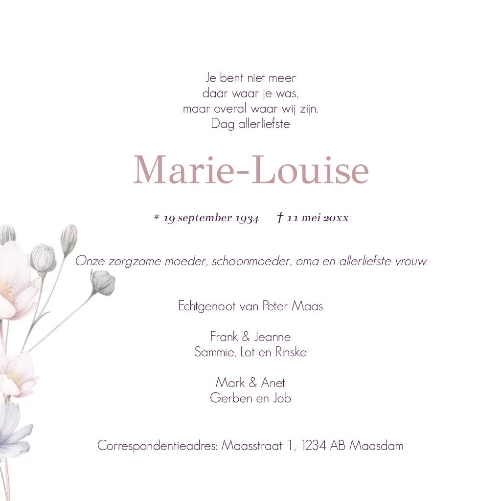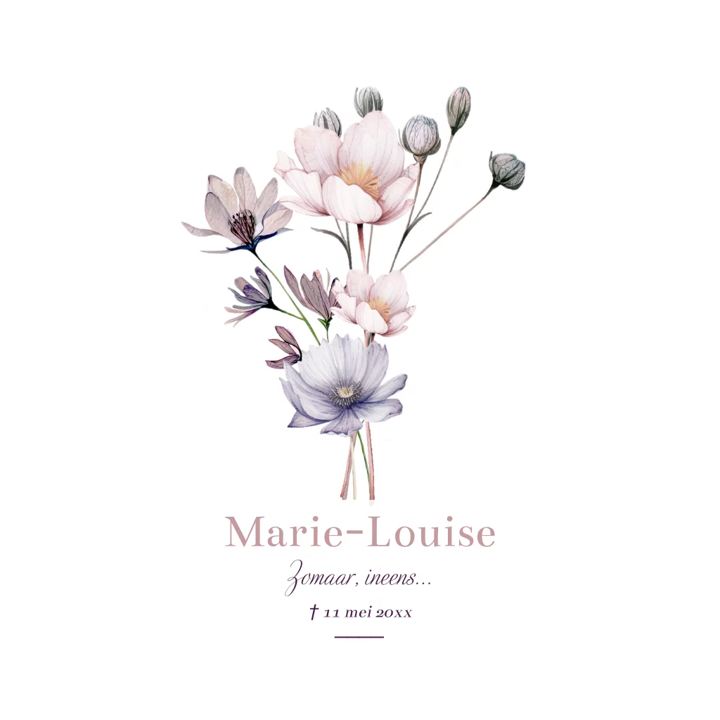 Kies voor deze subtiele en stijlvolle rouwkaart. Pak de kaart op bewerk deze met een persoonlijk gedicht en de informatie rondom het afscheid.