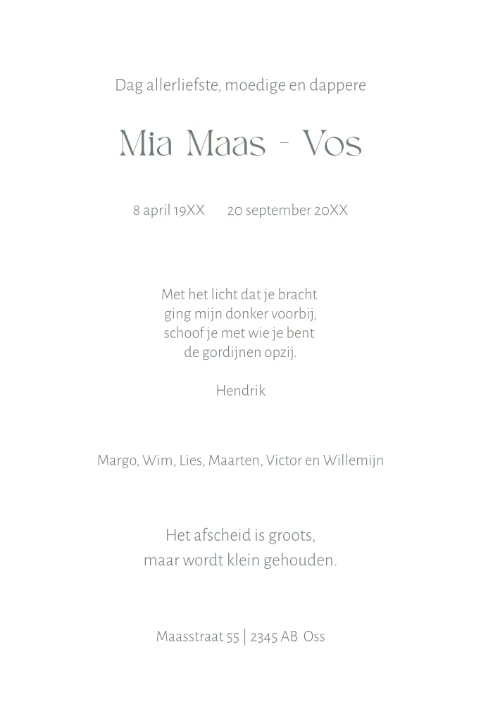 Maak een stijlvolle en lieve rouwkaart voor je dierbare. Met deze klassieke rozen in zalmroze is de uitnodiging voor het afscheid precies in balans.