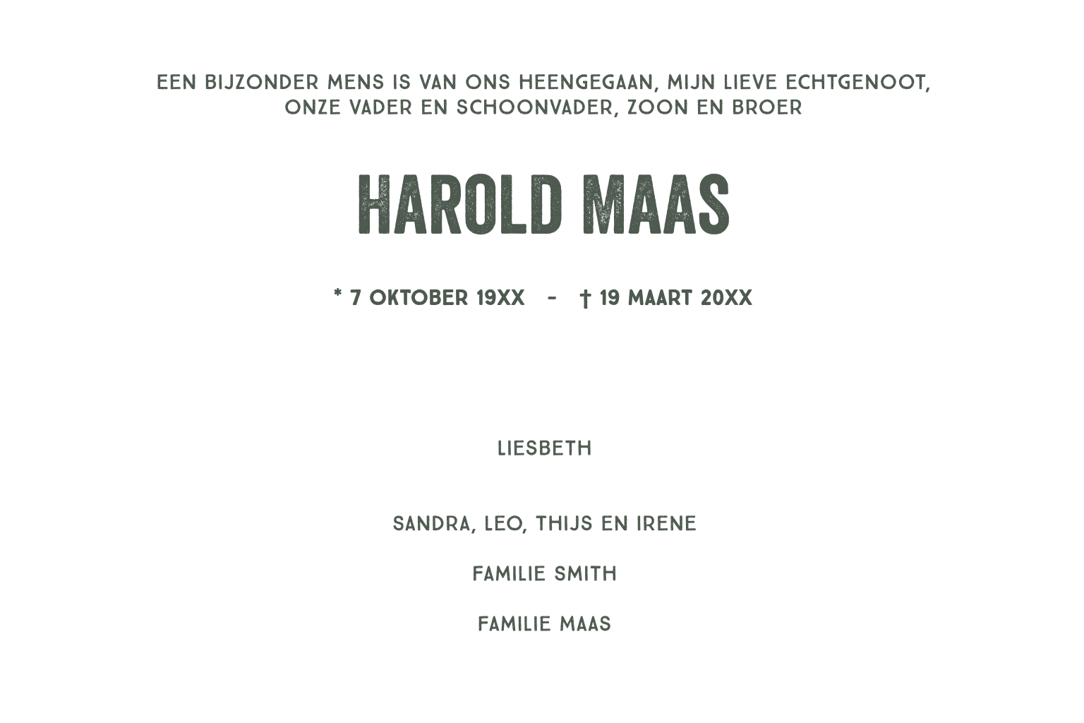 Rouwkaart met fotocollage en als achtergrond bomen - herfst