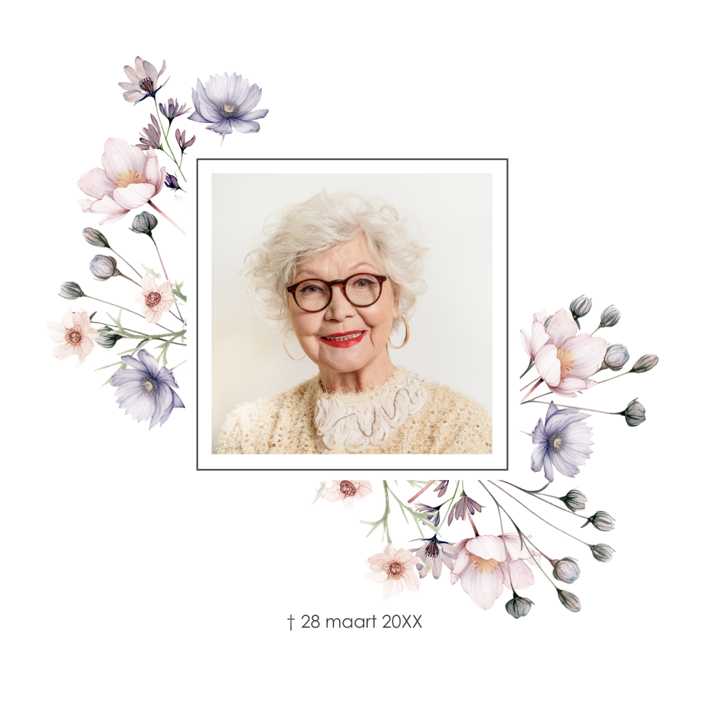 Stijlvolle rouwkaart met droogbloemen in zachte kleuren