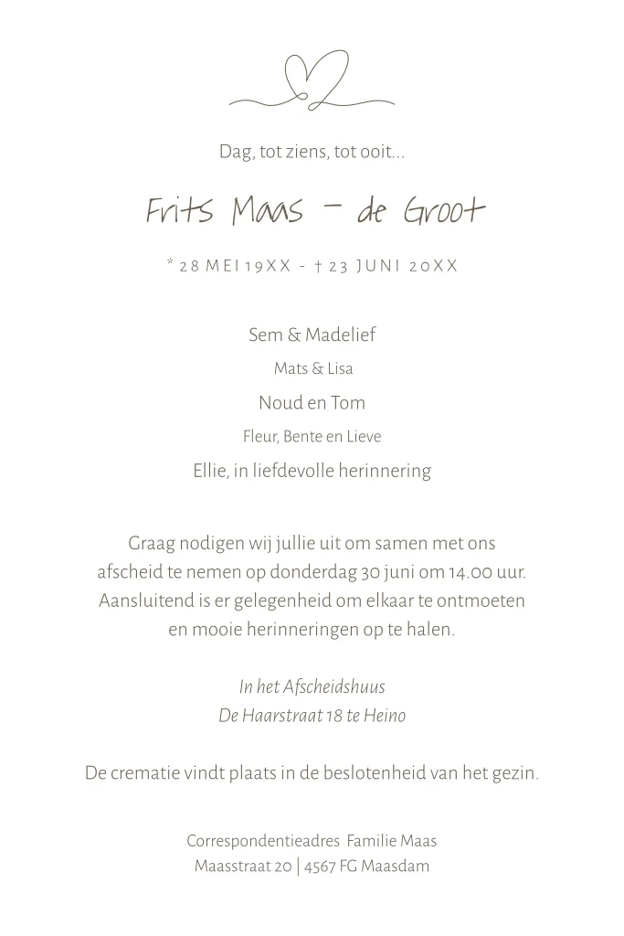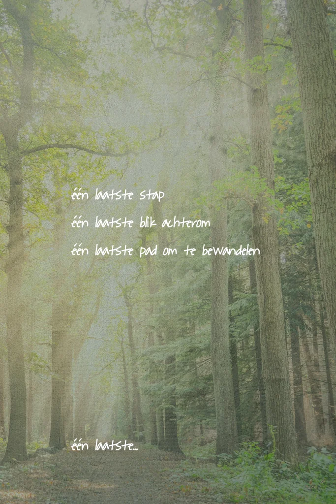 Rouwkaart met bospad en gedicht. Een rustige, tijdloze kaart om op een persoonlijke manier afscheid te nemen.