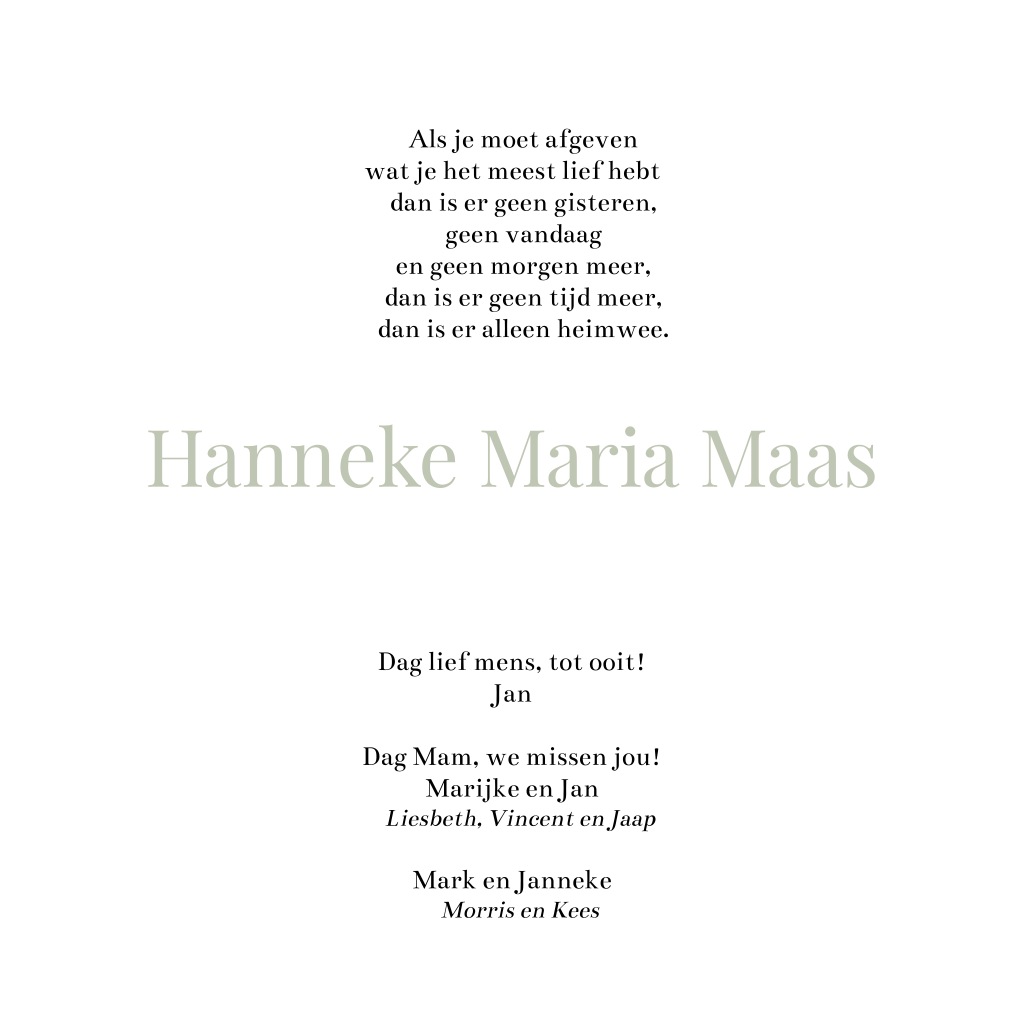 Kies voor deze moderne rouwkaart met illustraties in zwart-wit van de lelie. De groene kleuraccenten kun je eenvoudig vervangen door een favoriete kleur.