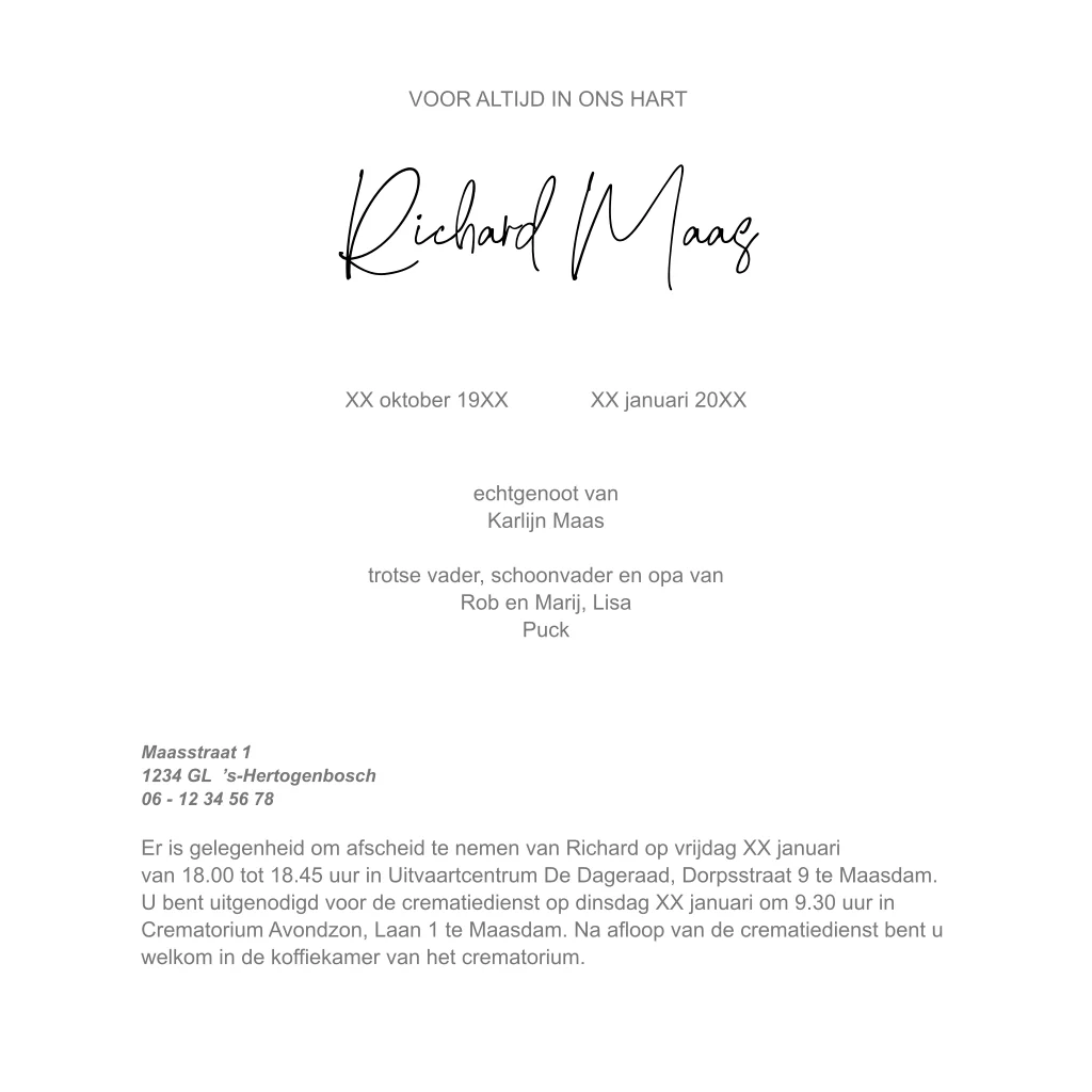 Met dit sjabloon maak je eenvoudig een persoonlijke rouwkaart. Kies afbeeldingen of illustraties die bij je dierbare passen en maak de kaart uniek.