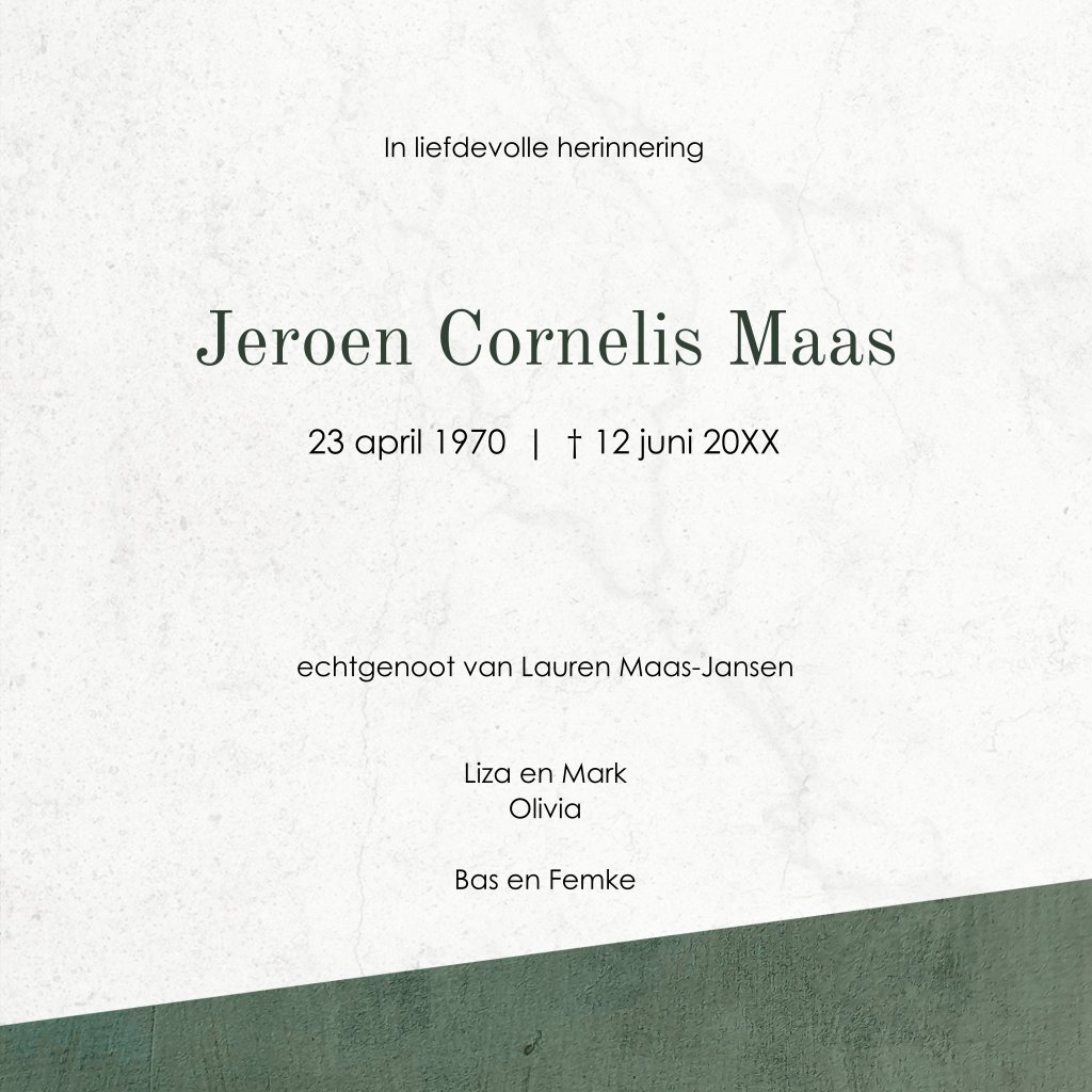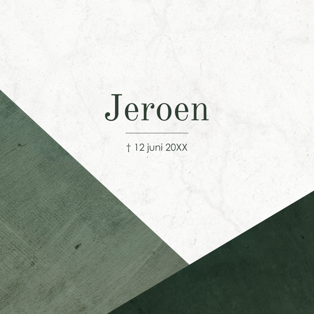 Moderne rouwkaart in stoere vlakverdeling.