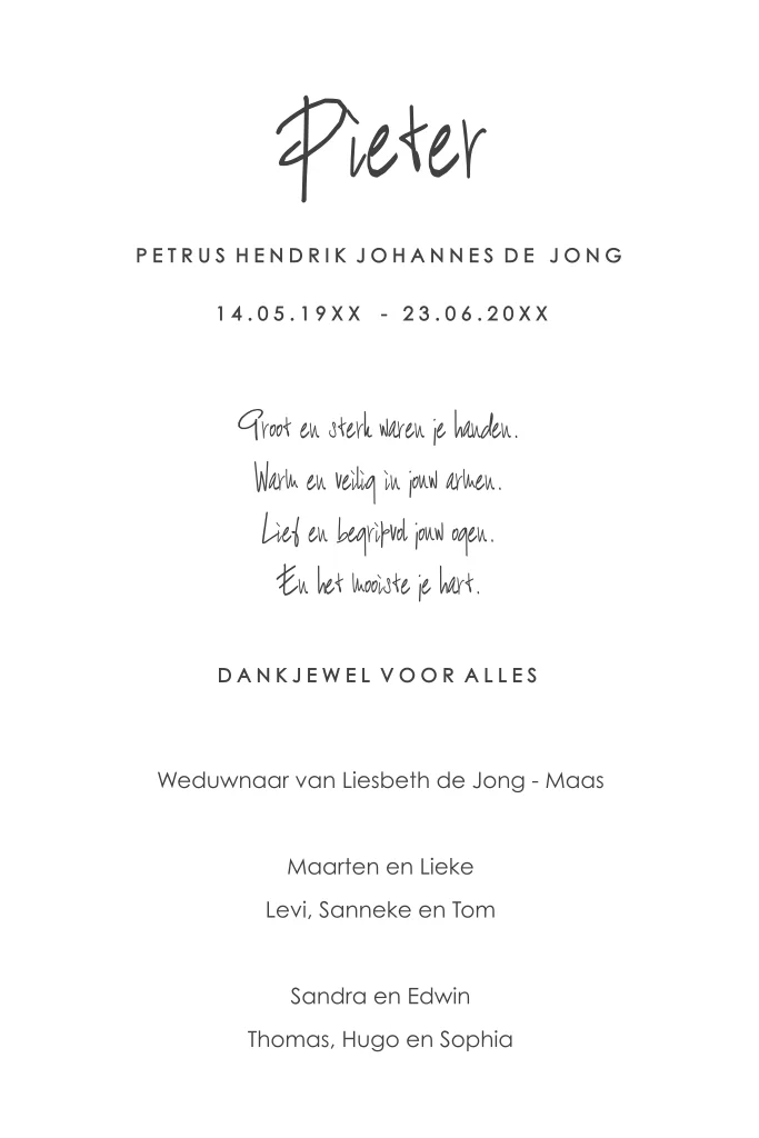 Kies voor deze rouwkaart met zeilboot. Het prachtige schilderij in combinatie met het gedicht geven de kaart een stijlvol karakter.
