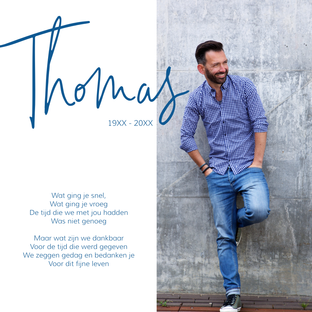 Kies deze rouwkaart met foto en maak eenvoudig een persoonlijke kaart. Een uitnodiging met moderne lettertypes.