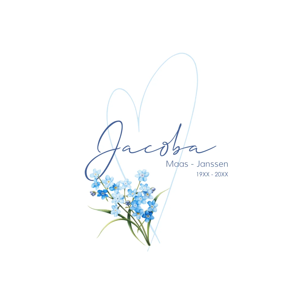 Rouwkaart met bloemen vergeet me nietjes en een hartje