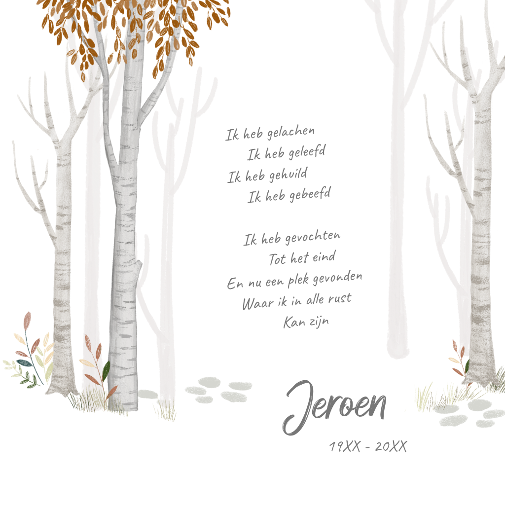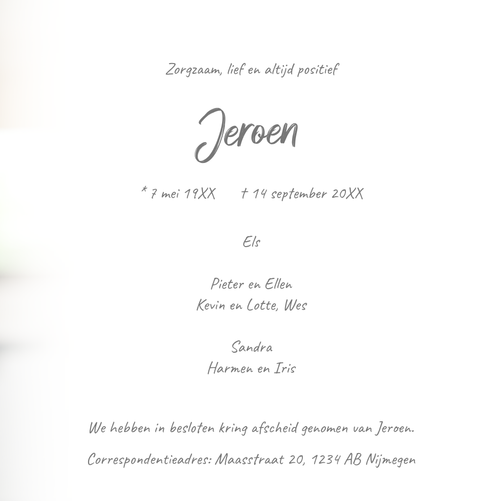 Een persoonlijke rouwkaart die zeker maanden een plekje krijgt bij familie en vrienden.