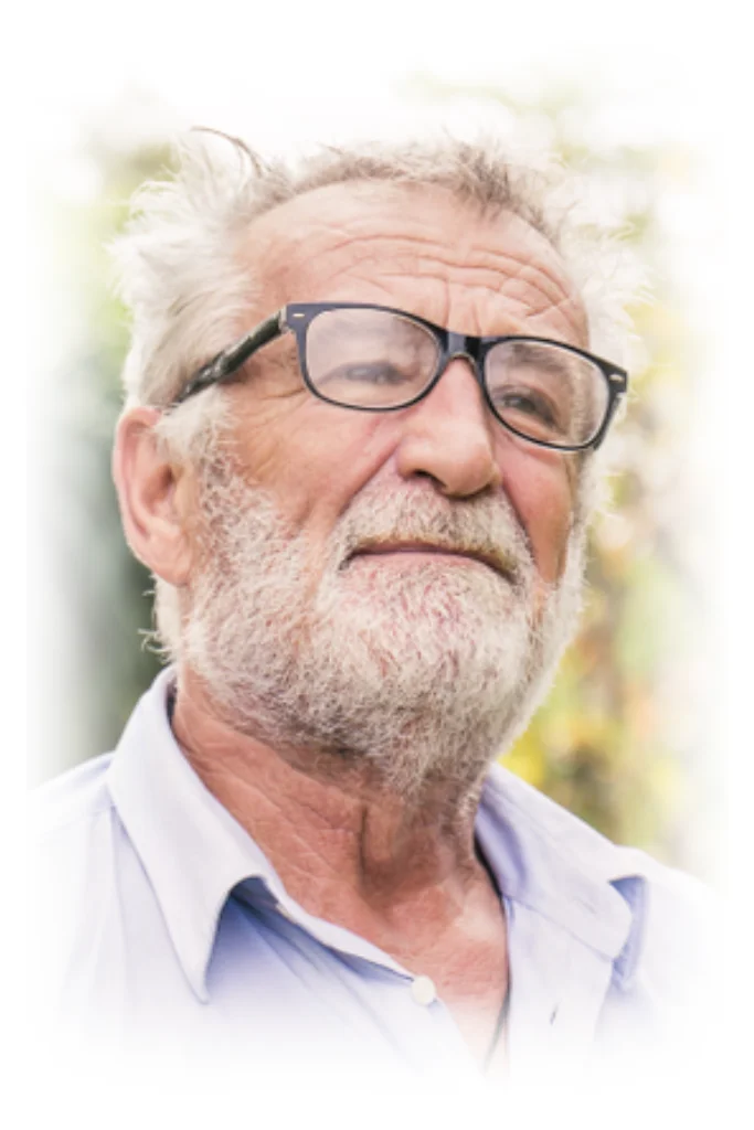 Rouwkaart man met op voorzijde foto met vervaagde rand
