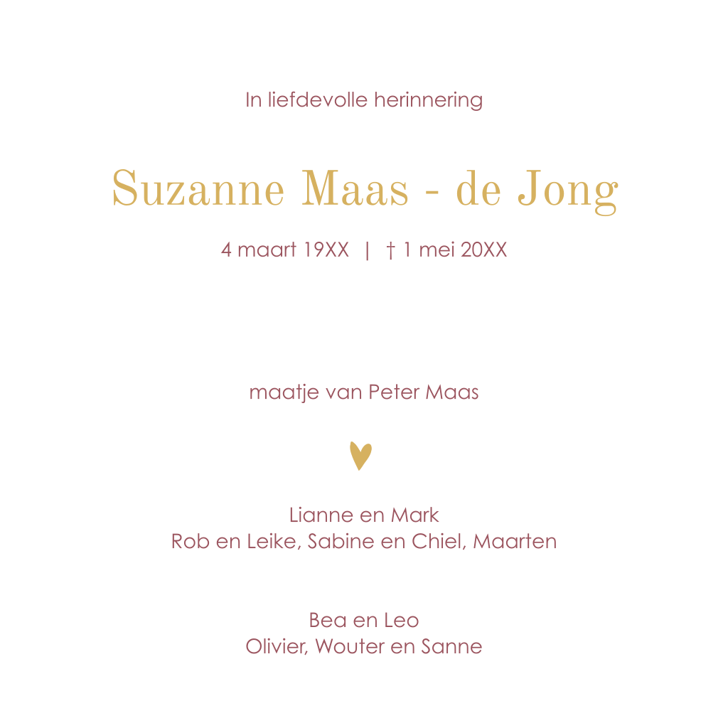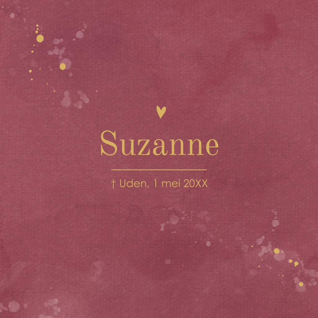 Maak online een rouwkaart die past bij je dierbare. Deze kaart is stoer, modern en ook stijlvol. Voor iemand die midden in het leven stond. Deze kaart is te bestellen in verschillende kleuren.