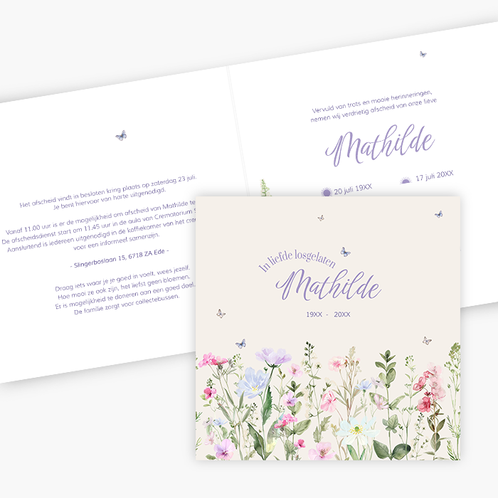 Rouwkaart moeder veldbloemen pastel | In liefde losgelaten