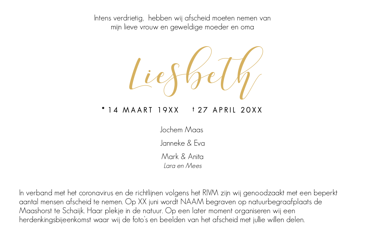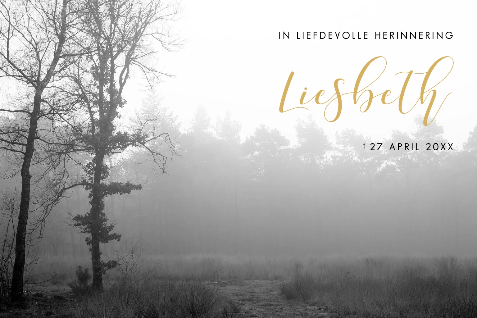 Rouwkaart maken online – Mistig bos & 'In liefdevolle herinnering'