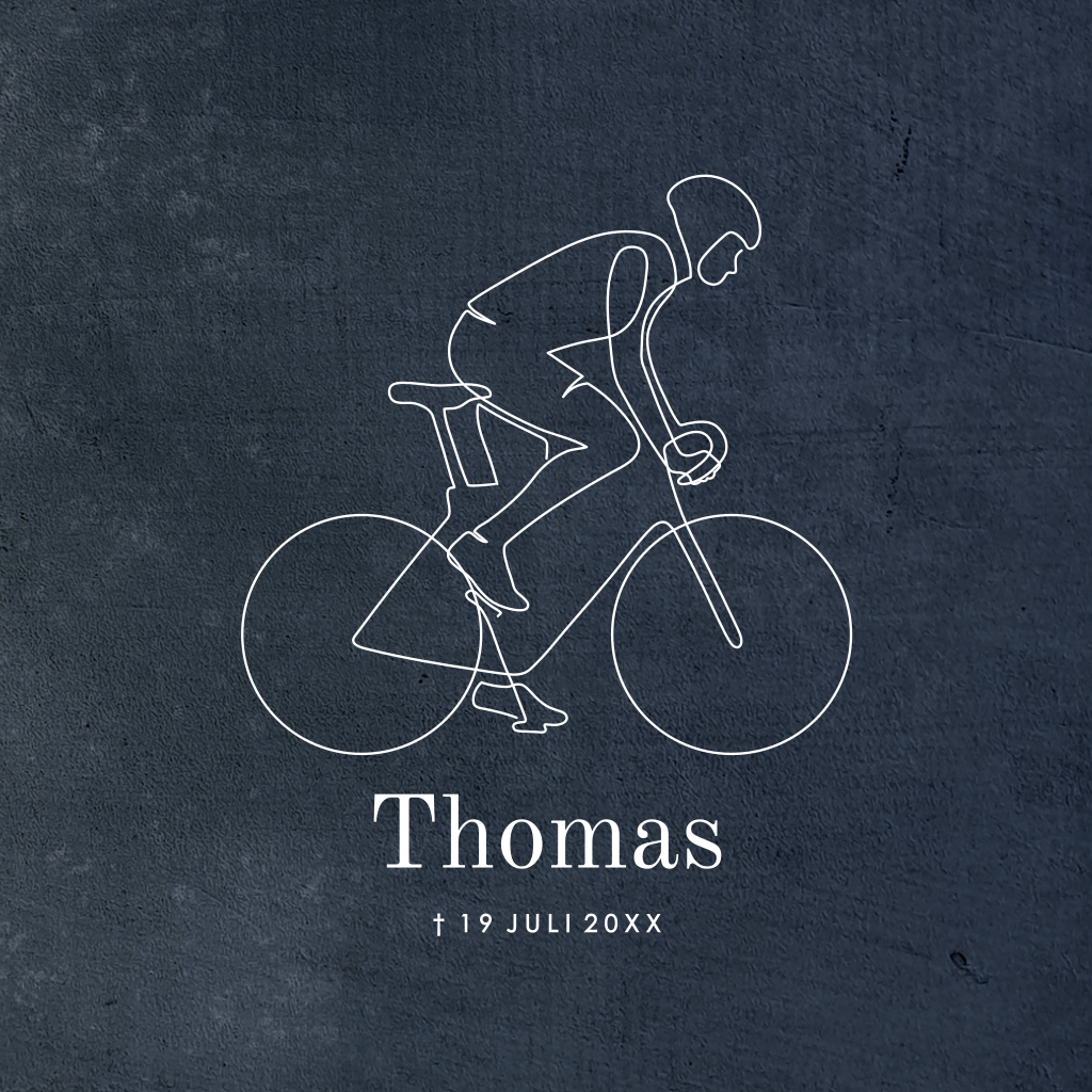 Moderne rouwkaart man met wielrenfiets in oneliner