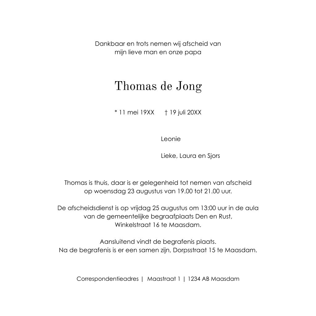Kies voor een rouwkaart die past bij het leven van je dierbare. Was hij een enorme fan van wielrennen? Modern en actief in het leven? Kies dit ontwerp en pas eenvoudig de tekst aan.