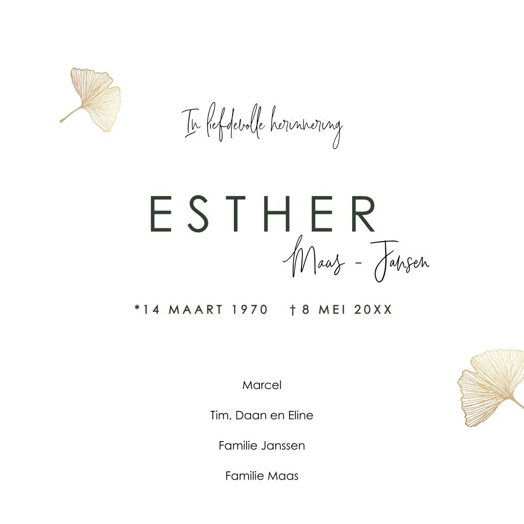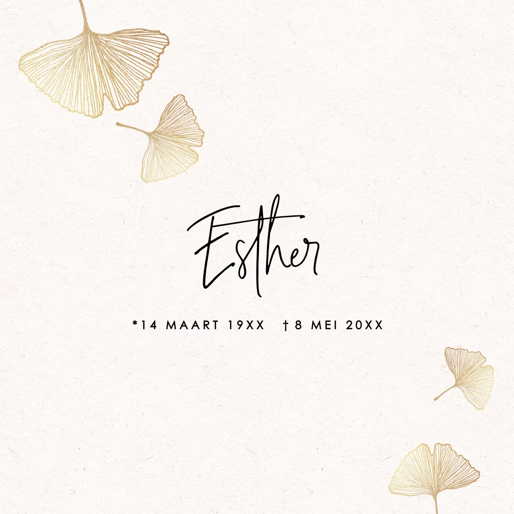Een prachtige rouwkaart met een modern ontwerp met vallen de blaadjes en stijlvolle typografie.