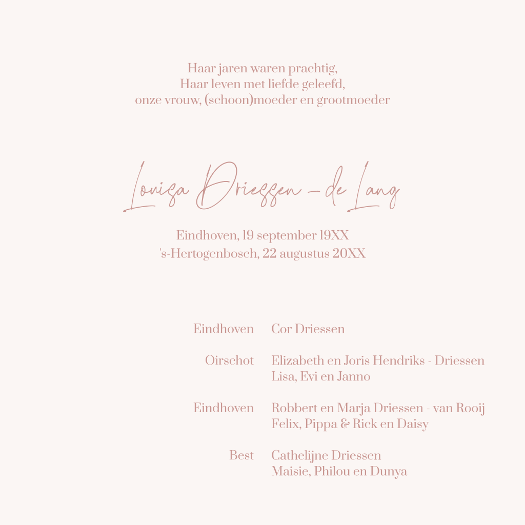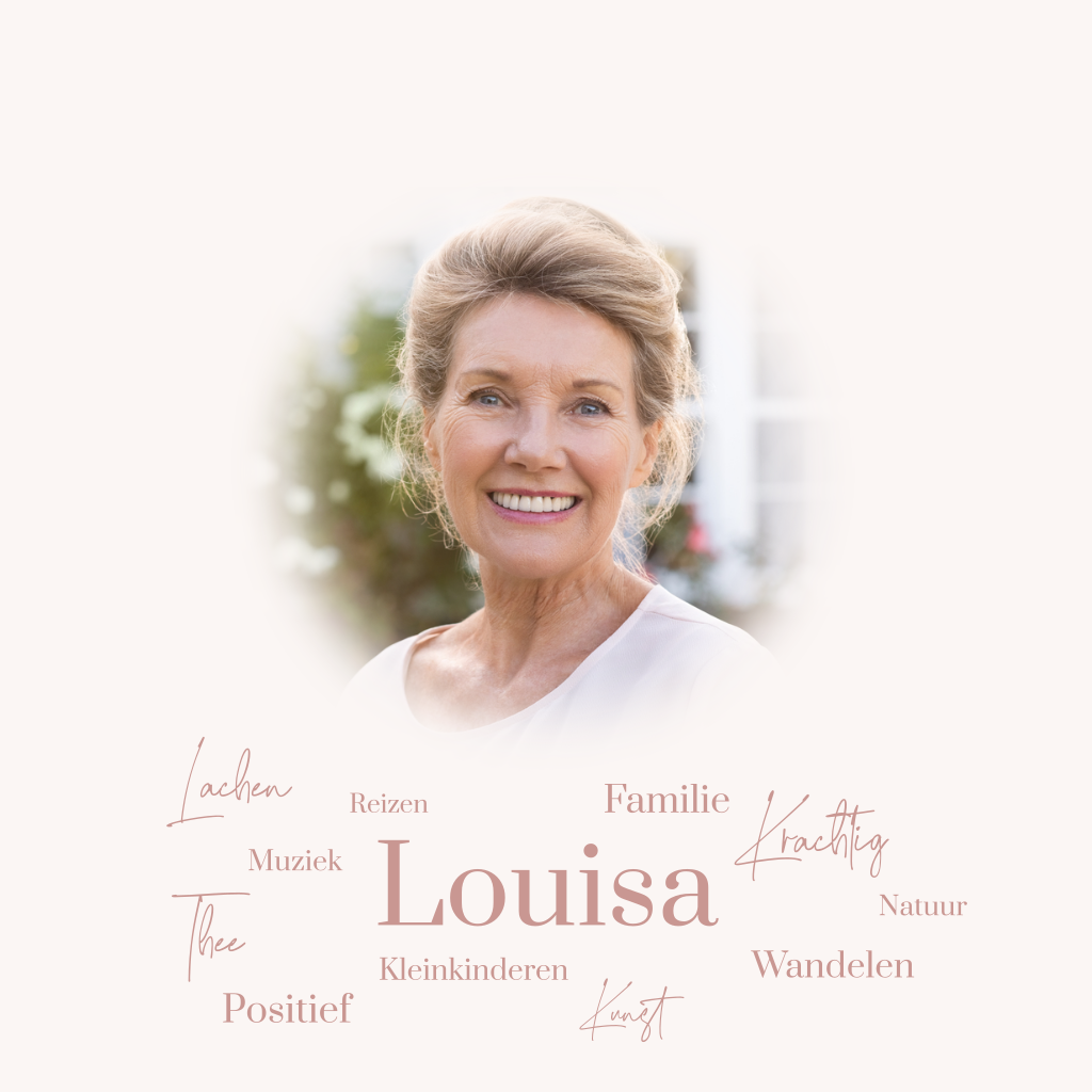 Een persoonlijke kaart met foto en treffende woorden. De rouwkaart krijgt vaak een speciaal plekje in de woonkamer, een mooi aandenken om te herinneren.
