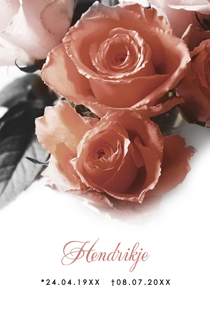 Rouwkaart zwart-wit met oranje rozen - stijlvol en klassiek