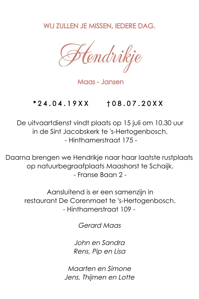 Laat de rouwkaart een weerspiegeling zijn van je dierbare. Met deze kleuren belicht je niet alleen het afscheid, laat je ook de herinneringen spreken.