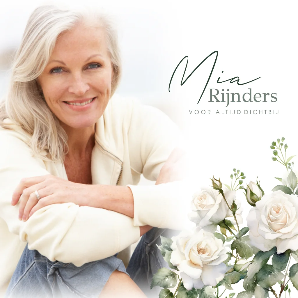 Rouwkaart met portretfoto en witte rozen - stijlvol en persoonlijk