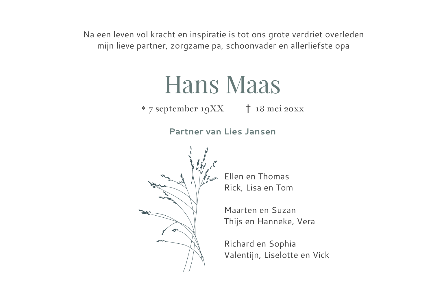 • Envelopkleur donkergroen past mooi bij deze rouwkaart.