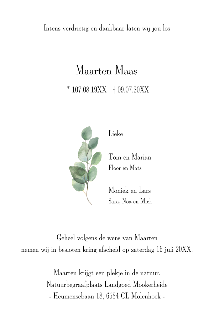 Kies eenvoudig illustraties, foto's en afbeeldingen uit onze beeldbank. Voeg eigen foto's en tekst toe en maak een persoonlijk rouwkaart.