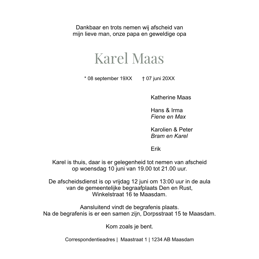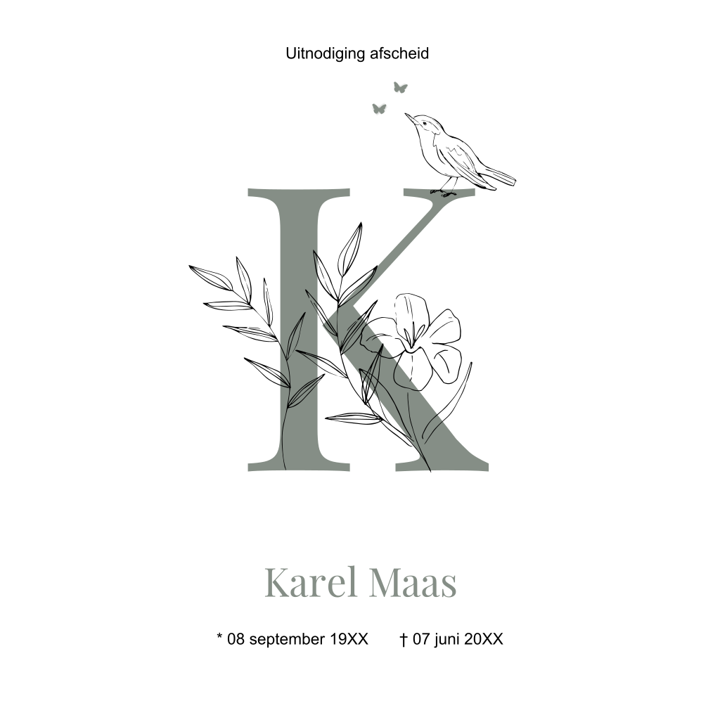Op zoek naar een grafisch stijlvol ontwerp? Kies dan voor deze rouwkaart. Wijzig eenvoudig het initiaal in de juiste letter en favoriete de kleur.