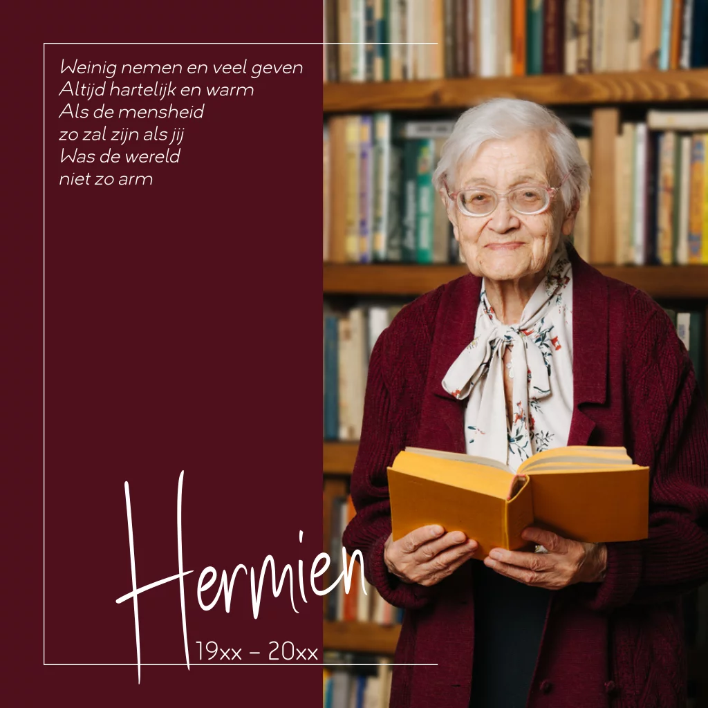 Rouwkaart met persoonlijke foto en hartverwarmend gedicht