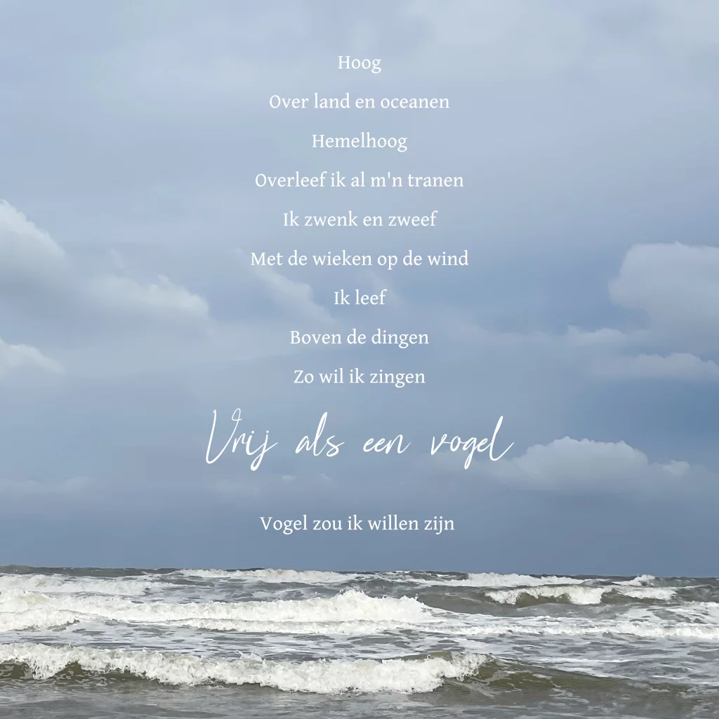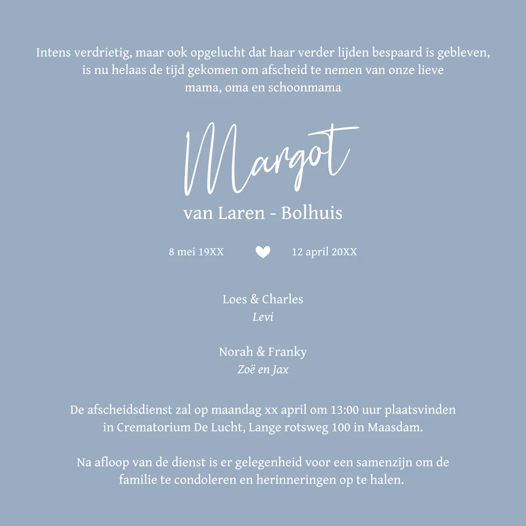 Een stijlvolle kaart thema zee, clean met strakke typografie. In de kaart is ruimte voor een mooie songtekst en voor alle informatie rondom het afscheid.