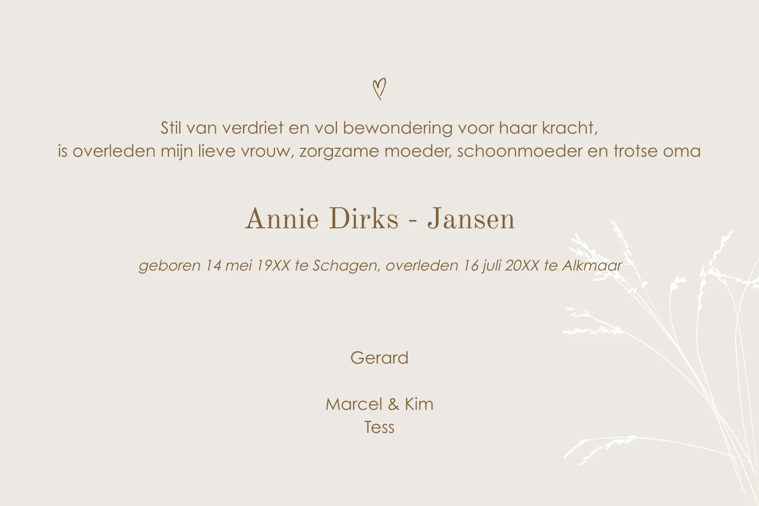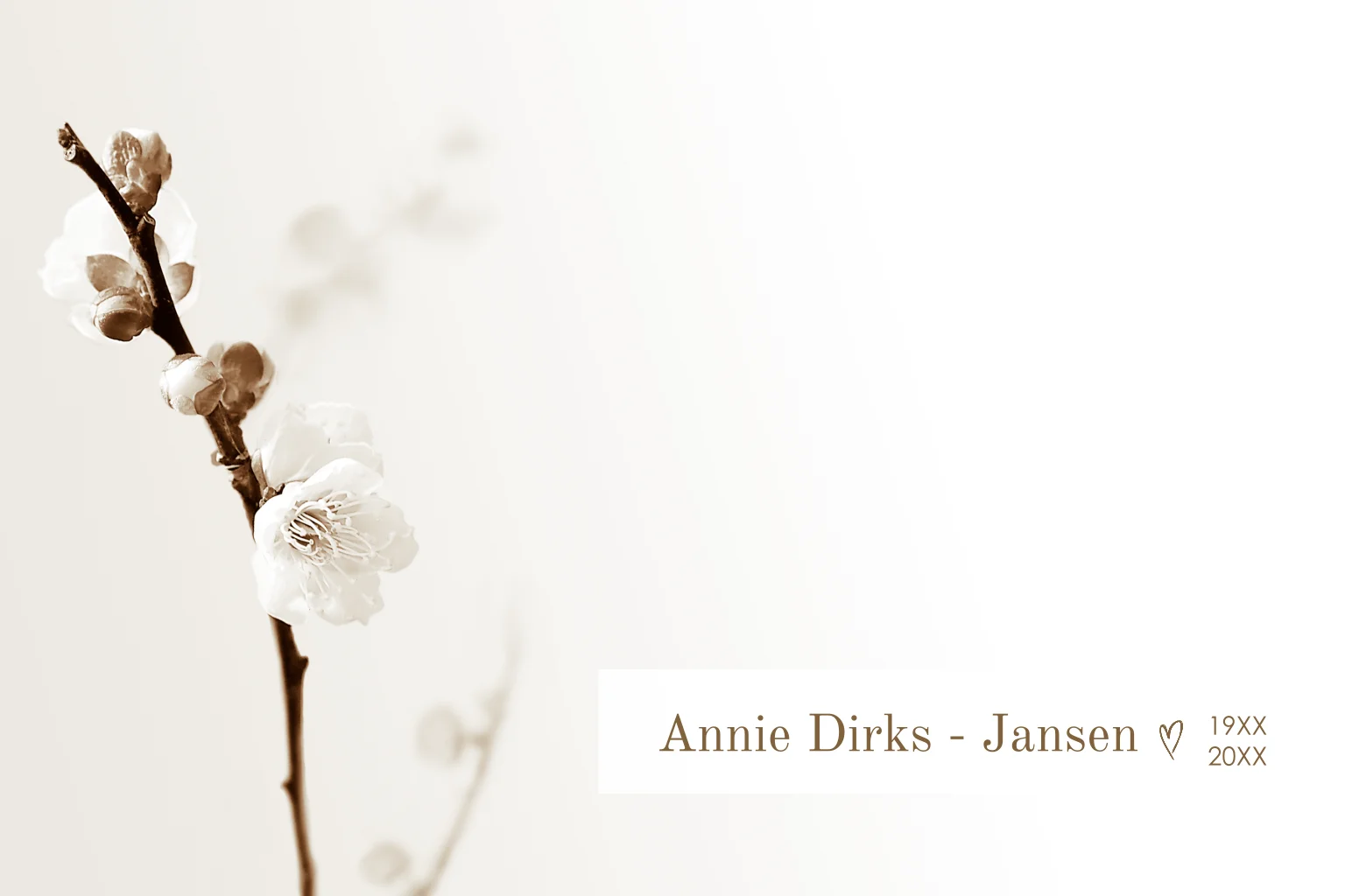 Een rouwkaart met bloesemtak, ingetogen en rustig. Kies een design welke past bij het leven van je dierbare.
