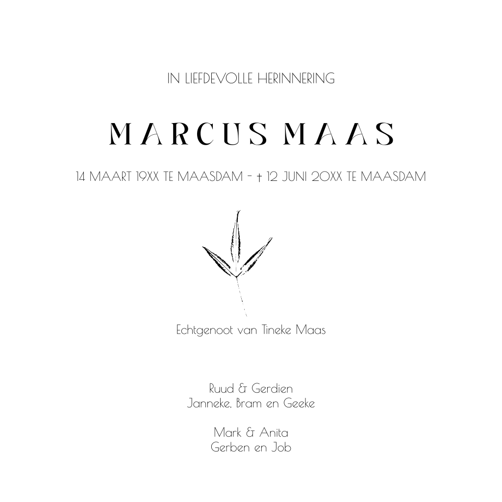 Stijlvolle rouwkaart om afscheid te nemen van dierbare. Ingetogen, sober en stijlvol.