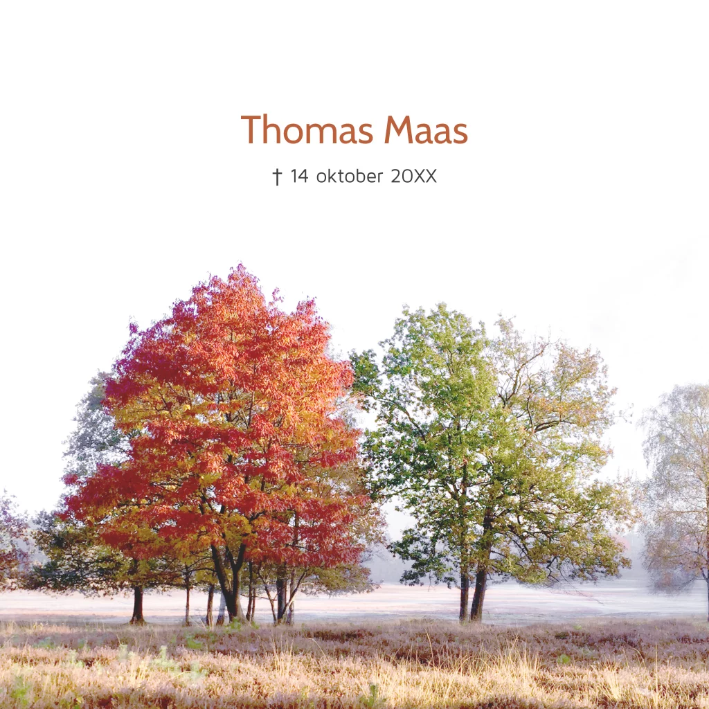 Rouwkaart bomen met een bladerdek van herfsttinten