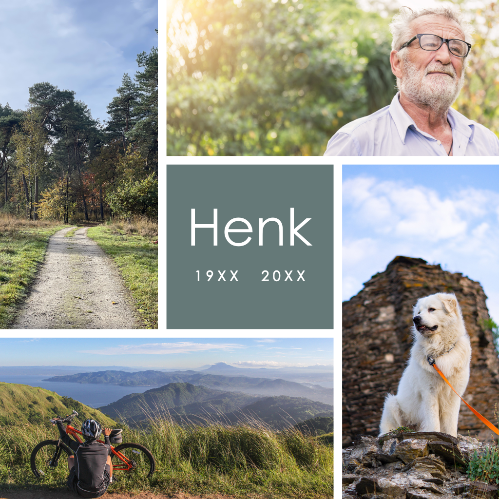 Klik op de foto's die in het voorbeeld gebruikt zijn en vervang deze door eigen beelden. Laat de kleuren van de foto's terugkomen in het ontwerp