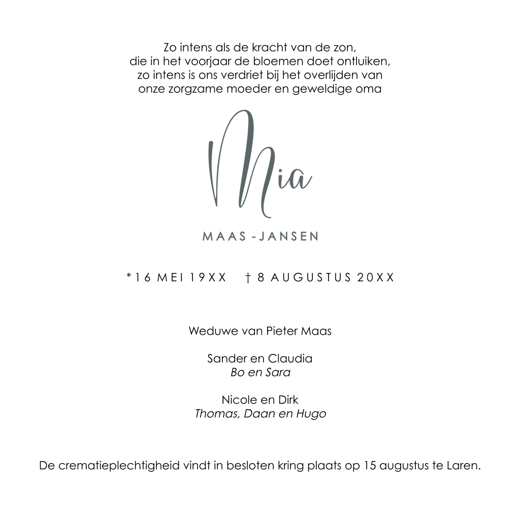 Een persoonlijke rouwkaart is een kaart met een foto van de overledene.