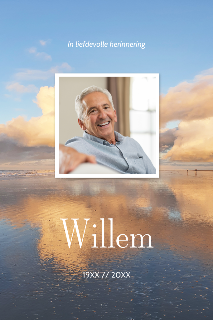 Kies eenvoudig illustraties, foto's en afbeeldingen uit onze beeldbank. Voeg eigen foto's en tekst toe en maak een persoonlijk rouwkaart.