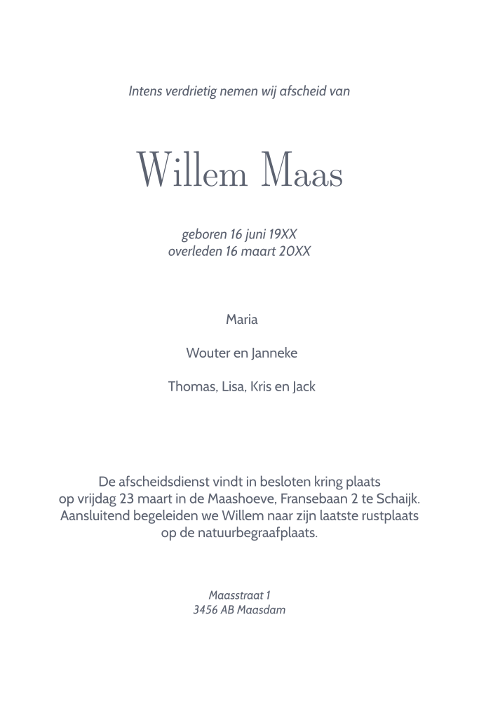• Envelopkleur donkerblauw past mooi bij deze rouwkaart.