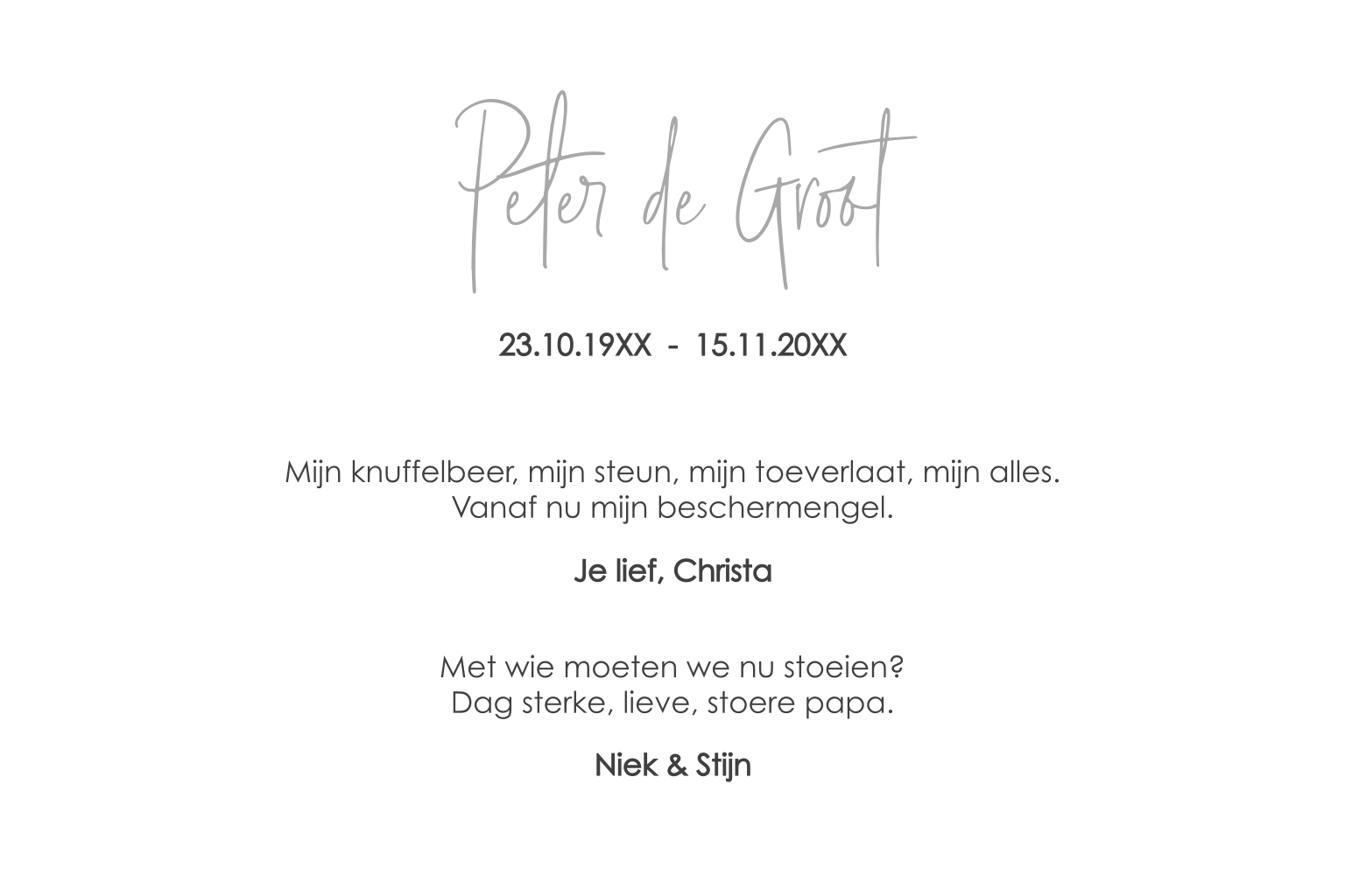 Een rouwkaart met foto maakt het extra persoonlijk. Een rouwkaart krijgt daardoor ook meer betekenis. Veel nabestaanden geven een rouwkaart met foto vaak een bijzonder plekje in huis. Om zo de overledene te herdenken.