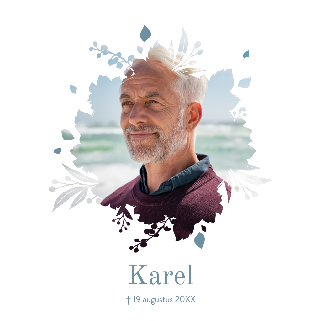 Rouwkaart man met portretfoto in een modern masker