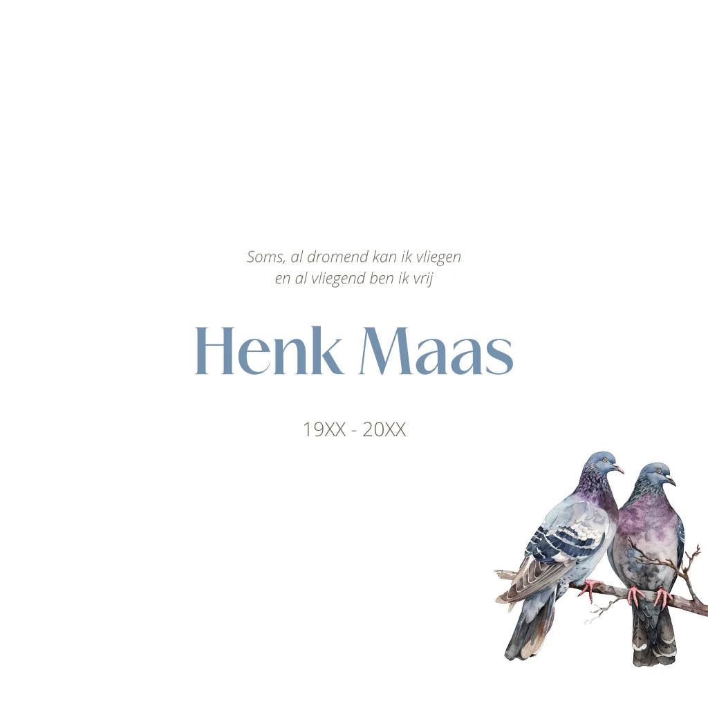 Vierkante rouwkaart met vredige duiven en troostvol gedicht