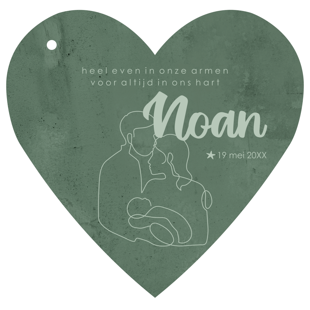 Maak een lief en uniek kaartje om de geboorte en het overlijden van jullie kanjer te delen met familie en vrienden. Hoe mooi dit kaartje in de vorm van een hart. Wij hebben er ook een boorgaatje in gemaakt zodat je er een touwtje of lint aan kunt bevestigen zodat iedereen het kaartje van jullie zoontje een mooi plekje kan geven.