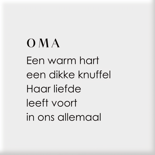 Stijlvolle witte keramieken tegel met een hartverwarmende tekst ter herinnering aan oma. Een blijvend aandenken vol liefde en warmte.