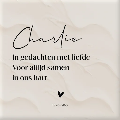Een serene keramieken tegel met liefdevolle tekst en hartdetail. Een warme, blijvende herinnering aan een dierbare.