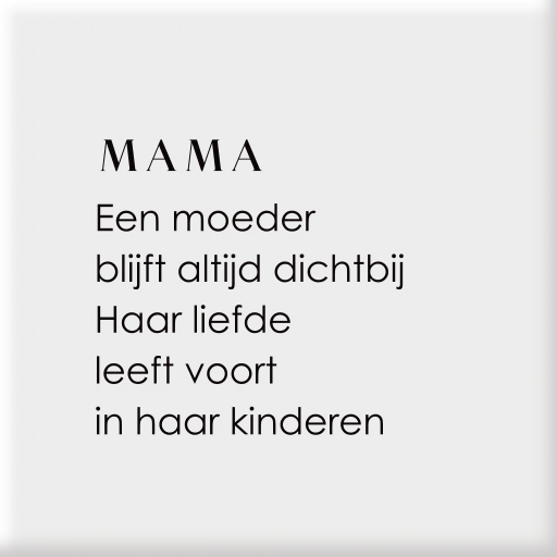 Een elegante keramieken tegel ter nagedachtenis aan mama. Haar liefde en warmte leven voort in haar kinderen.
