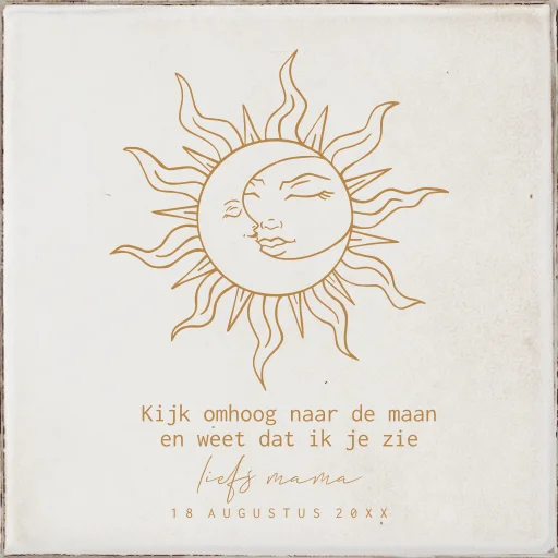 Keramiek tegeltje zon en maan met troostende tekst